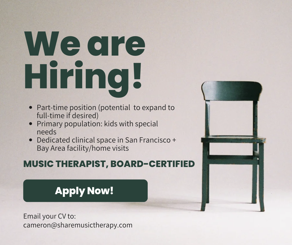 If you are not an MT-BC or are not currently in the process of becoming an MT-BC, please do not apply to this job on Indeed or LinkedIn. If you are in related fields and are interested in learning more about music therapy, we would love to connect with you and invite you to reach out to us on our Contact page.